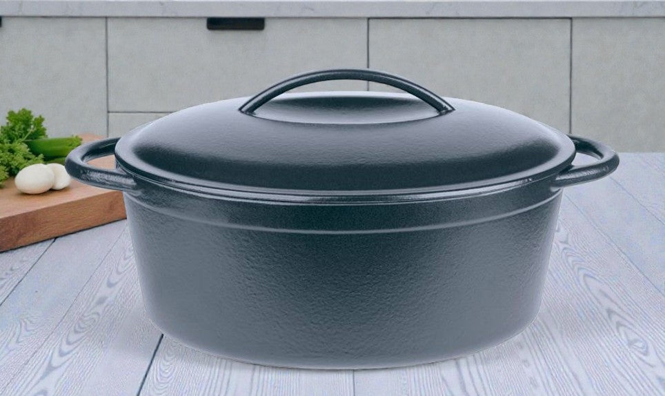 Dieser ovale Bräter ist aus schwerem Gusseisen für den lebenslangen Gebrauch gefertigt und innen beige, sowie außen farbig emailliert. Die Dunstzapfen im Deckel dienen zum gleichmäßigen Betropfen des Bratgutes und führen somit zum gesunden Schmoren im eigenen Saft. Der immer optimale Kontakt zur Heizfläche sorgt für eine gleichmäßige Wärmeverteilung und lange Wärmespeicherung auf allen Herdarten – auch auf Induktion.